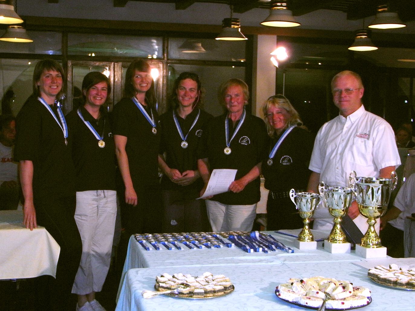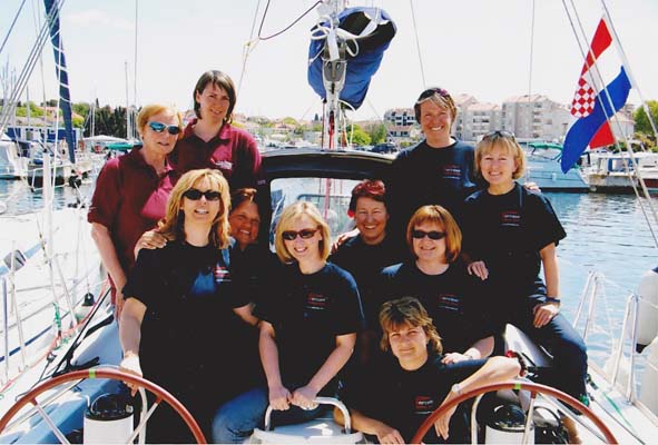 Andrea Iribauer als Skipperin und Spitrimm, Veronika Siegl als Steuerfrau, Johanna Hofmann am Vorschiff, Helga Glas Pitt, und unsere 2 Regattaneulinge Sabine Gruber und Katja Hofmann sollten die Crew stellen: Sollten, 3 Tage vor Regattabeginn fiel Andrea krankheitsbedingt aus, somit endete Veronika wieder mal als Skipperin und fand Gott sei Dank schnell eine 6. mit Barbara Wonisch (war gerade mit Veronika beim KornatiCup ohnehin in Biograd).