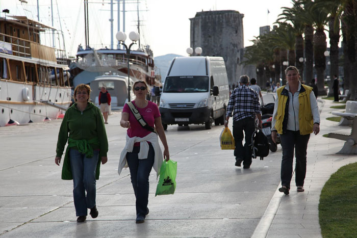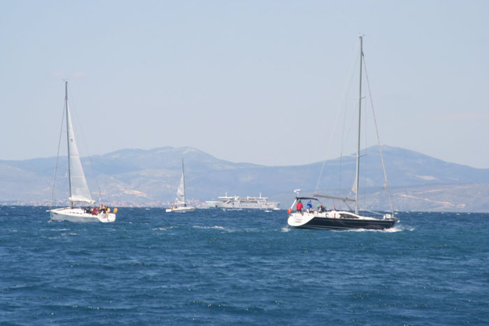 Der Freitag endlich bringt angenehmes, warmes Wetter und eine leichte Brise und wir nützen das für eine Besichtigungs- und Übungsrunde in der Bucht zwischen Split und Trogir zum Ausklang.