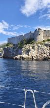 Sonntag 25. Mai bringt uns die letzte Etappe nach Dubrovnik, zwischen Peljesac und Mljet mit böigem Südost Wind zw. 1und 5 BF. Wir bleiben 2 Nächte in der neuen Marina Frapa gleich rechts bei der Einfahrt zum Hafen Gruz, mit 126 EURO erstaunlich günstig. Den Hafentag Sonntag verbringt jede nach freier Wahl, zw. Seilbahn auf den Aussichtsberg über der Stadt, Museen, Stadt Besichtigung oder Rundgang um die Halbinsel Lapad, mit 3 riesigen neuen Hotelanlagen.
